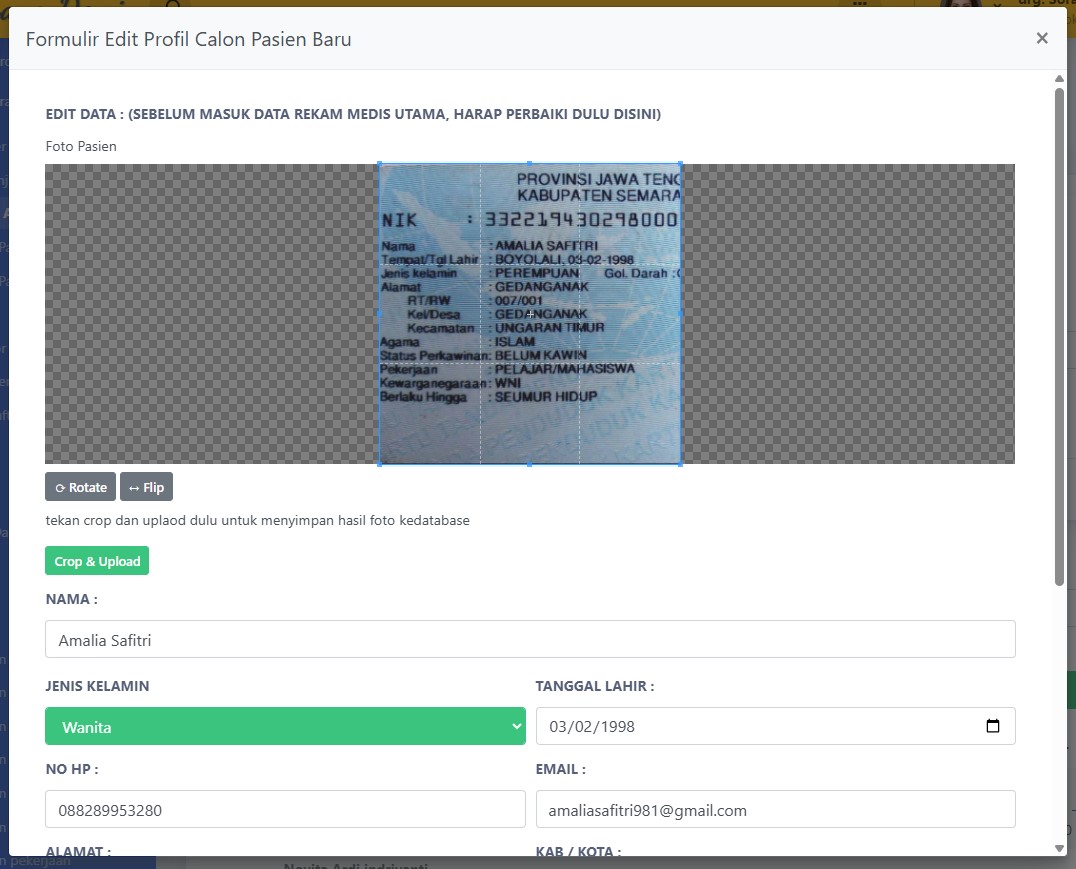 - Edit Data Pasien yang datang (untuk dilakukan perbaikan), jika klik akan muncul :
