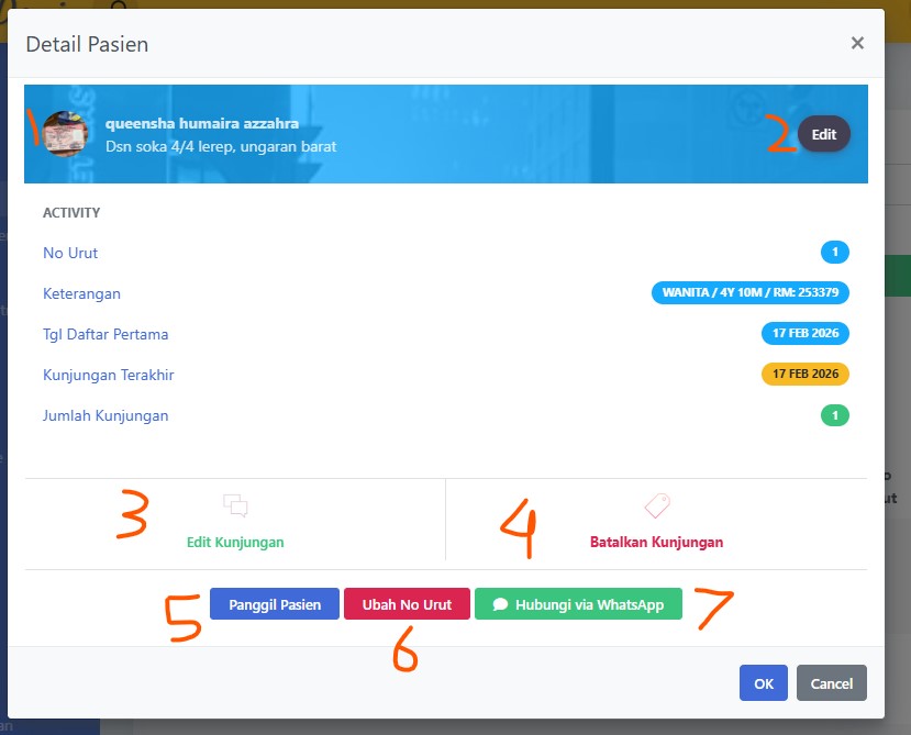 - Mengubah no urutan pasien