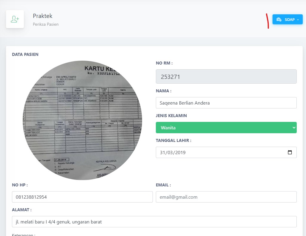 - klik start praktek, maka akan muncul daftar pasian yang siap anda input