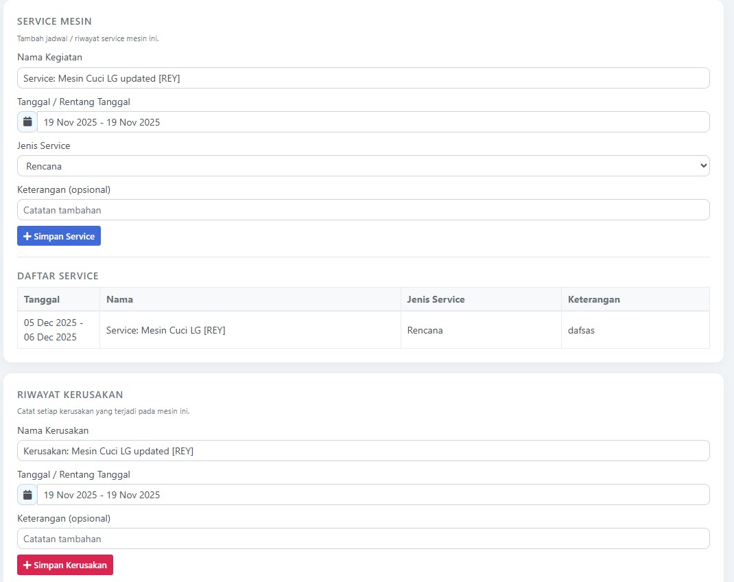 Gunakan ini untuk penjadwalan perawatan berkala dan menelusuri histori perawatan.